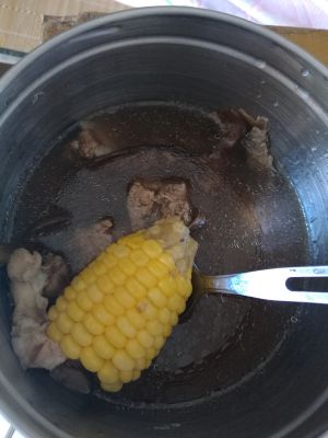 用汤锅把清水煮沸后,加入榴莲核、排骨,待煮沸后继续小火熬。