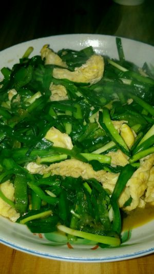 锅内倒入油,烧6成熟,将鸡蛋下锅,翻炒至蛋液成块,韭菜下锅,翻炒半分钟即可起锅装盘