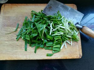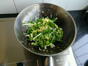 锅中加少许油,加葱蒜炒香,加入韭菜,炒至变软变色,后加入鸡蛋,加盐,加鸡精,出锅