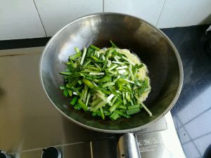 韭菜下锅炒七成熟加入炒好的鸡蛋炒上一分钟下盐就可以了