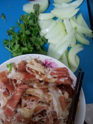 羊肉加入两勺生抽,两勺料酒腌制一下,洋葱和香菜切好