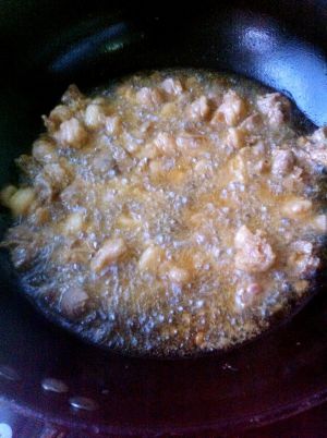 锅烧热,多到点油,油热后放羊肉,炒制8成孰后捞出,将油空干