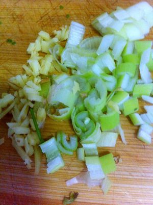 3油锅烧热,放入适量油,五成油温放入姜丝蒜,爆香。