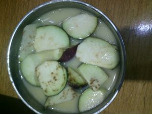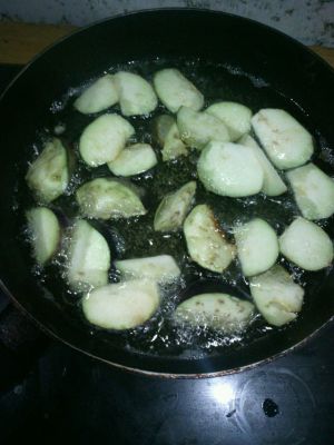 茄子炸之前,先在面粉鸡蛋水里泡泡