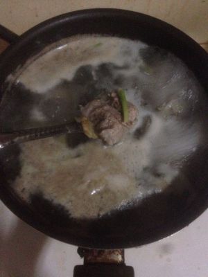 一个半小时后鲜美的汤就做好了,加适量的盐调味,撒葱花,