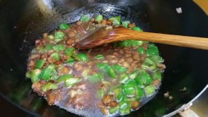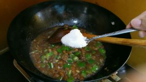 起锅烧油,下入肉沫炒香,如果真没有也可以不放,把炸好的茄子倒进去翻炒几下,把青椒倒进去,料汁倒进去翻炒几下就可以出来了,不要炒的时间太久,不然就不脆了,本来茄子都是熟的。