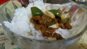 *收汁时放入尖椒一起炒片刻,最好多留一些汤汁出来,然后淋上点香油,出锅。