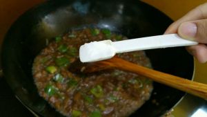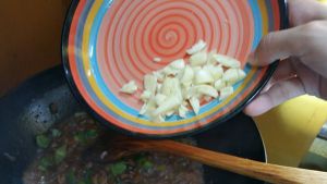 我们可以调一个料汁,蒜末少许,生抽,耗油,料酒,醋各一大勺,水淀粉2勺,盐,鸡精 白糖各一小勺,搅拌均匀,