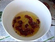 干红辣椒剪成段,放到干净的碗里!将锅内的油烧至七八成热,然后将热油浇到碗里的辣椒上,炸成辣椒油!(放辣椒的碗一定不能有水,要不会有危险的)。