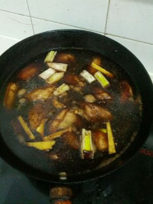 中火煮至酱汁开始变粘稠后,开盖不断翻面收汁。