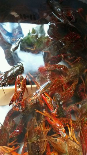 市场买来的活的小龙虾很脏,用盐水泡半小时,烧一大锅开水直接倒进去,这时候小龙虾就死了,方便清洗,虽然有些残忍,但是方便清洗,用牙刷流动的水把小龙虾一个个刷干净,好费时间,不过吃着干净(,或者直接煮一下,虾会变红,脏东西也会掉)