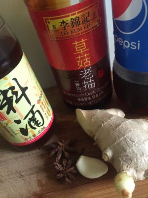 生姜大蒜八角爆香,加入鸡翅翻炒,加入料酒、老抽和生抽各一勺,翻炒着色,鸡翅香味出来后加入半瓶可乐(多了可能会甜),调至小火。