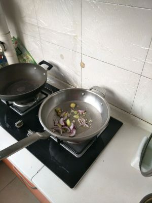 切好葱姜蒜(不一定非得用洋葱,因为家里没有大葱了。)