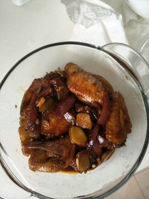 鸡翅洗净、放葱姜水中煮沸捞出、沥干水份