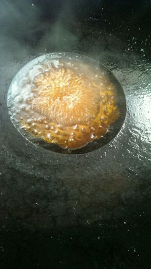 热锅冷油下白糖炒出细泡加番茄酱不停搅拌