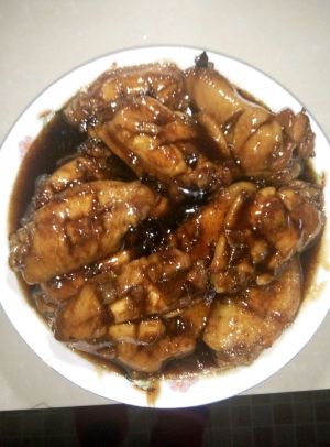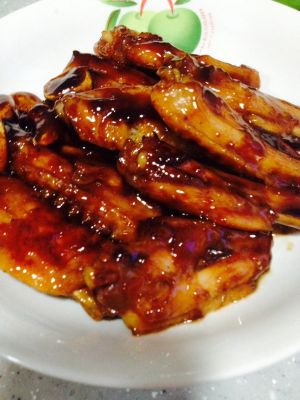 收汁完毕,调味精,加一点盐,可乐鸡翅做好了。