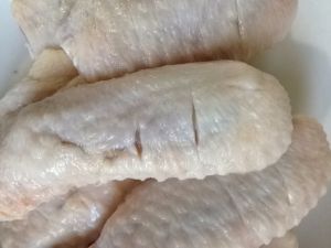 鸡翅化软洗净,用刀切三个适当长度的口子。