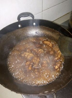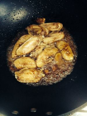 将油锅起火放入姜片爆炒,然后放入腌好的鸡翅和鸡脖,在到入可乐直到收汁,就可以了