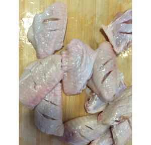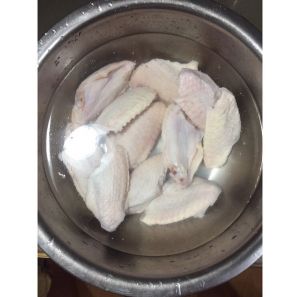 鸡翅改刀,用水灼一下,用生抽,料酒腌制一会