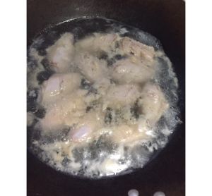 锅中放少许植物油,油热下入鸡翅翻炒。
