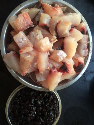 鱼抹盐腌一天一夜后挂上风吹两天,取下切成小块,豆豉用酒提前泡30分钟,捞起控干