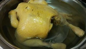 鸡煮好,捞出放入冰水中,能使有鸡肉嫩滑的口感