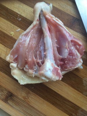 用刀在鸡腿表面划上几刀,把鸡腿中的筋划断!(如果不划开直接蒸的话鸡腿肉很可能会收缩在一起!)