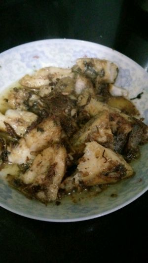 炒出香味后,倒入装盘的鱼,加适量开水,烧开,收汤汁,加味精。
