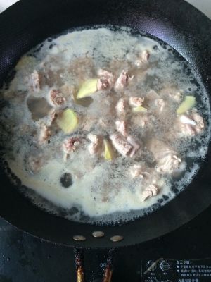 加入没过排骨的冷水,加生姜、大葱、料酒。