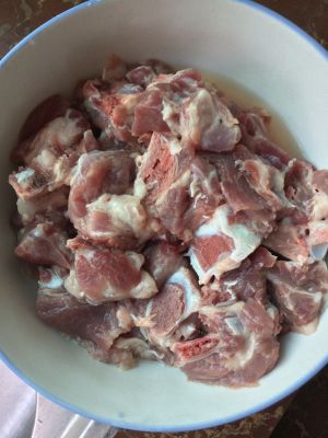 水烧开,放一点盐,再放入排骨,姜片和八角,料酒。煮二分钟,捞出排骨。
