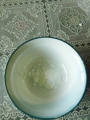 将鸡蛋去蛋清保留蛋黄,打入碗中两个,加入淀粉或生粉一勺到两勺之间(看个人勺子大小)搅拌均匀后备用!