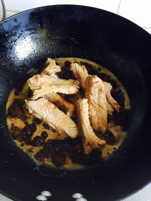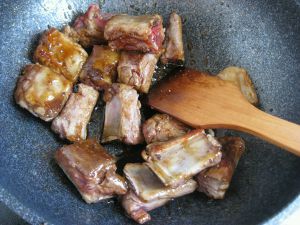 加入排骨,和煮排骨的汤汁,慢慢收汁就好了