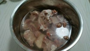 排骨与脊骨放入冷水中浸泡一会儿,中途换几次水