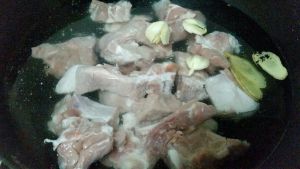 排骨洗净放入锅中,加入姜蒜和没过排骨的水。