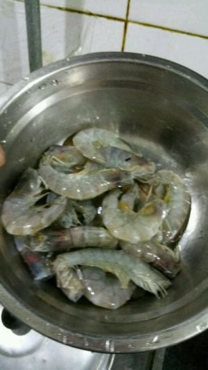 青虾剪去头部沙袋,剪去须子,脚,背开去除黑色肠子 备用