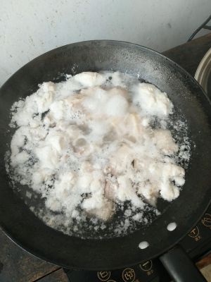 将排骨用料酒、盐腌制十五~二十分钟后中打入一个鸡蛋 搅拌均匀 每块排骨沾一下面粉再入油锅炸