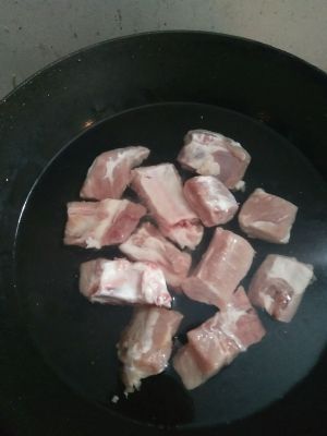 将肋骨放入锅中,添水没过排骨既可,烧开。