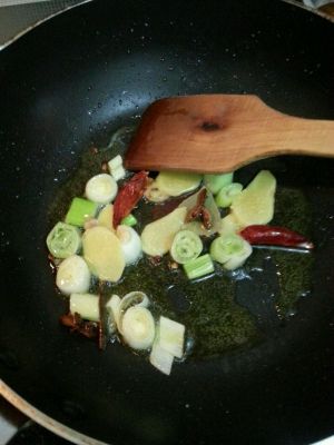 锅里放一点油把葱,姜,花椒辣椒,大料爆香