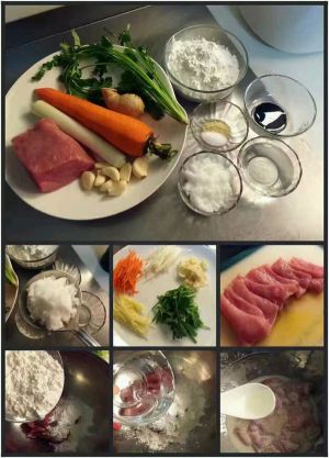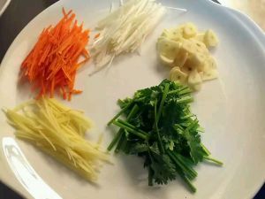 姜去皮切丝,葱切丝,胡萝卜切丝,蒜切片