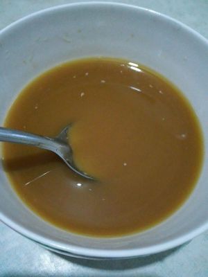 一勺生抽、蚝油、醋 一小勺糖 两勺清水 一点辣椒面搅拌均匀