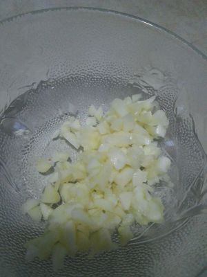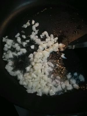 不粘锅中加入少量食用油,蒜末下锅煸炒