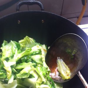 把上步的食料放在生菜上,或是把生菜倒入锅内翻炒,均可。