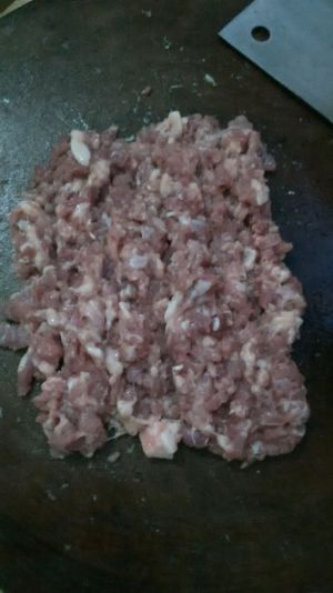将五花肉剁碎,放小碗内,磨入少许姜蓉。