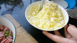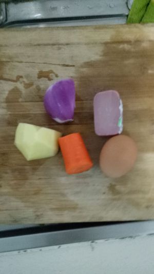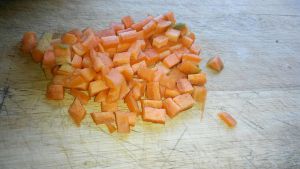 胡萝卜切块(家乐福里有青豆、玉米、胡萝卜一起装的,我建议)