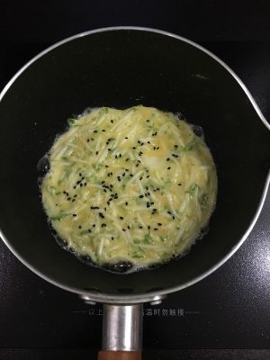 也可放些黑芝麻,小火煎制三分钟,底边成金黄色