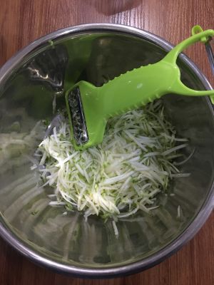 西葫芦擦成丝,用盐腌出水