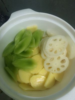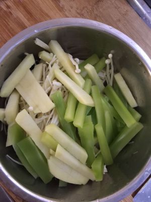 土豆切条,莴笋切条,金针菇洗干净,去掉后面的根部