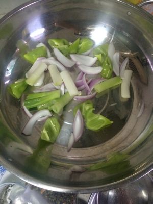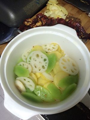 首先要先把从菜市场买来的新鲜食材进行预处理。择菜洗菜,鱼豆腐等改小刀,鸡翅用水浸泡一会儿,也从中劈开改小刀。就是能掰开的都分盘装好,适合自己的喜好。鸡翅可以提前腌制15分钟。