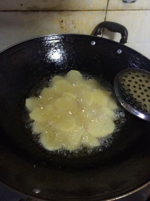 炸土豆,中火大概炸一分半钟几天,久了一会翻炒会碎,而且催的好吃些。