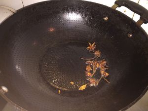 热锅放油转小火,放八角慢慢逼出香味,要有耐心